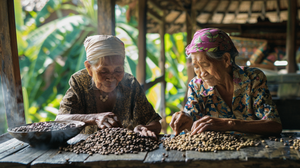 The women were examining each bean and sorting them into two piles: those that were good enough for foreigners and those that would go to locals who weren’t so concerned about the shape of their beans.